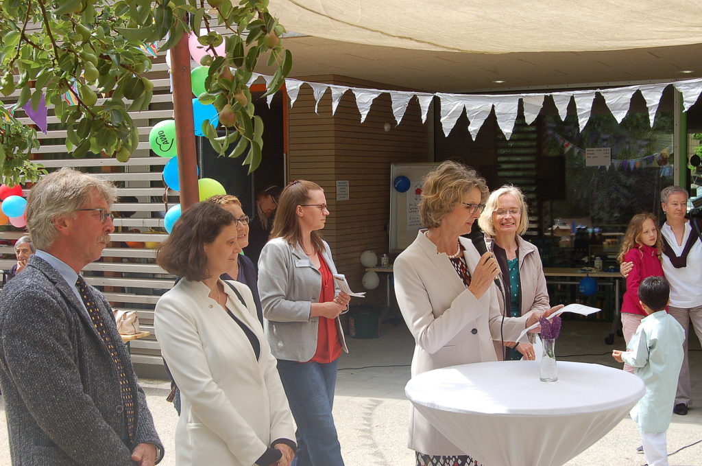 Seit fünf Jahren öffnet die Internationale Kita inzwischen ihre Türen für Familien aus den unterschiedlichsten Herkunftsländern, mit unterschiedlichen Sprachen und Kulturen. Dieses Jubiläum wurde am Freitag, 22. Juni mit einer Feier begangen, die Eltern und Kinder, Erzieherinnen und Erzieher und viele weitere Gäste vereinte, darunter die Bürgermeisterin der Stadt Bonn, Frau Angelica Kappel, Frau Botschafterin Ingrid Jung als Leiterin des Bonner Verbindungsbüros des Auswärtigen Amtes zum UN Campus und Frau Angelika Frevert als Abteilungsleiterin der Bundesanstalt für Immobilienaufgaben (BImA) mit zahlreichen weiteren BImA-Mitarbeitern.
